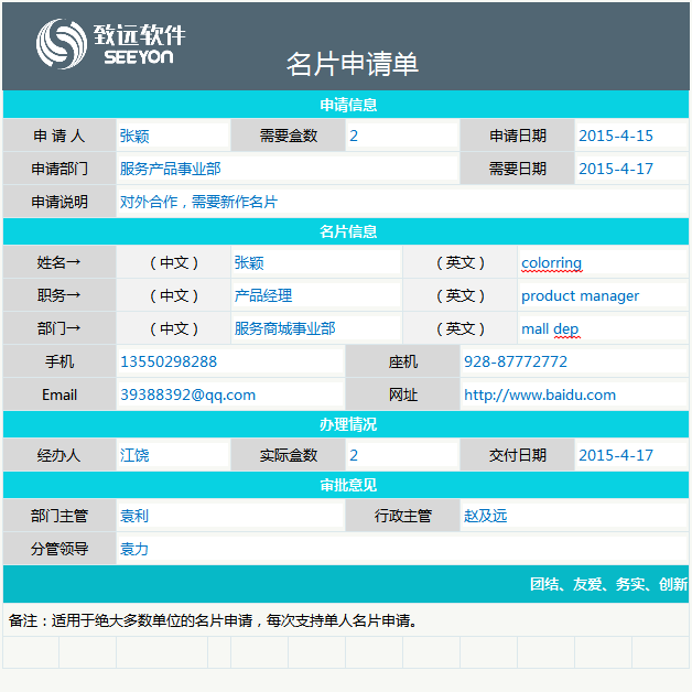 名片申请单