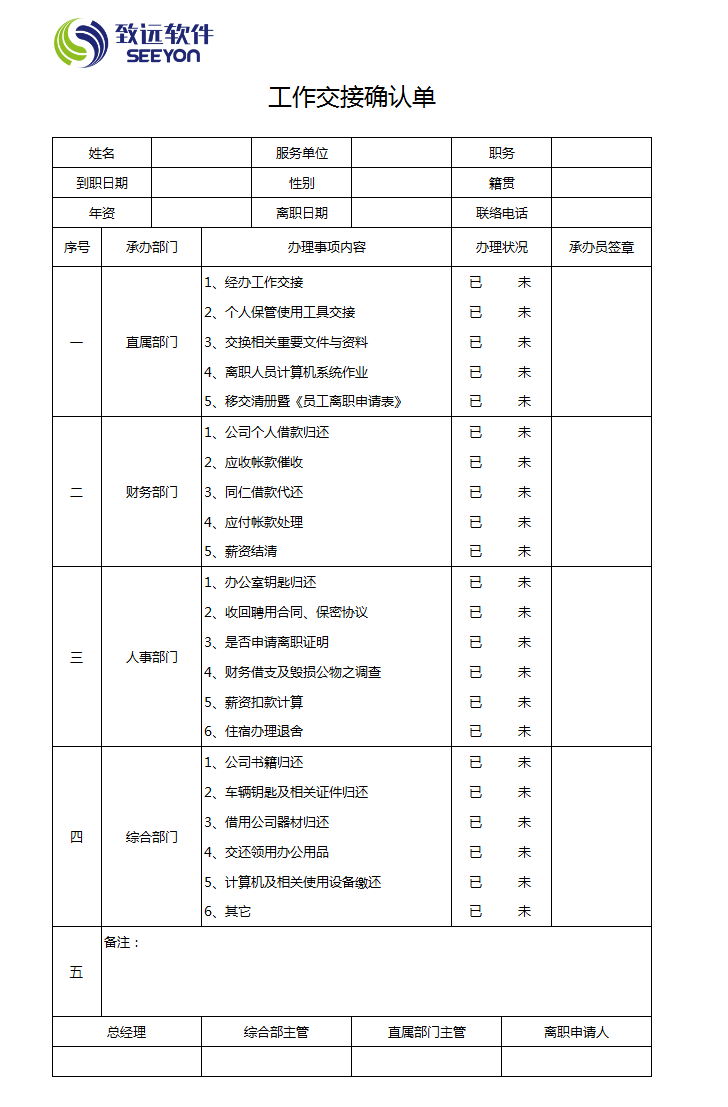 工作交接确认单